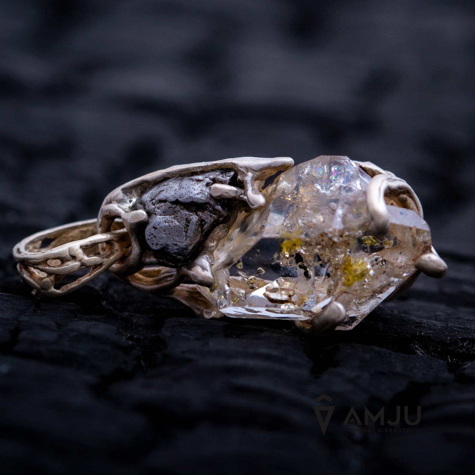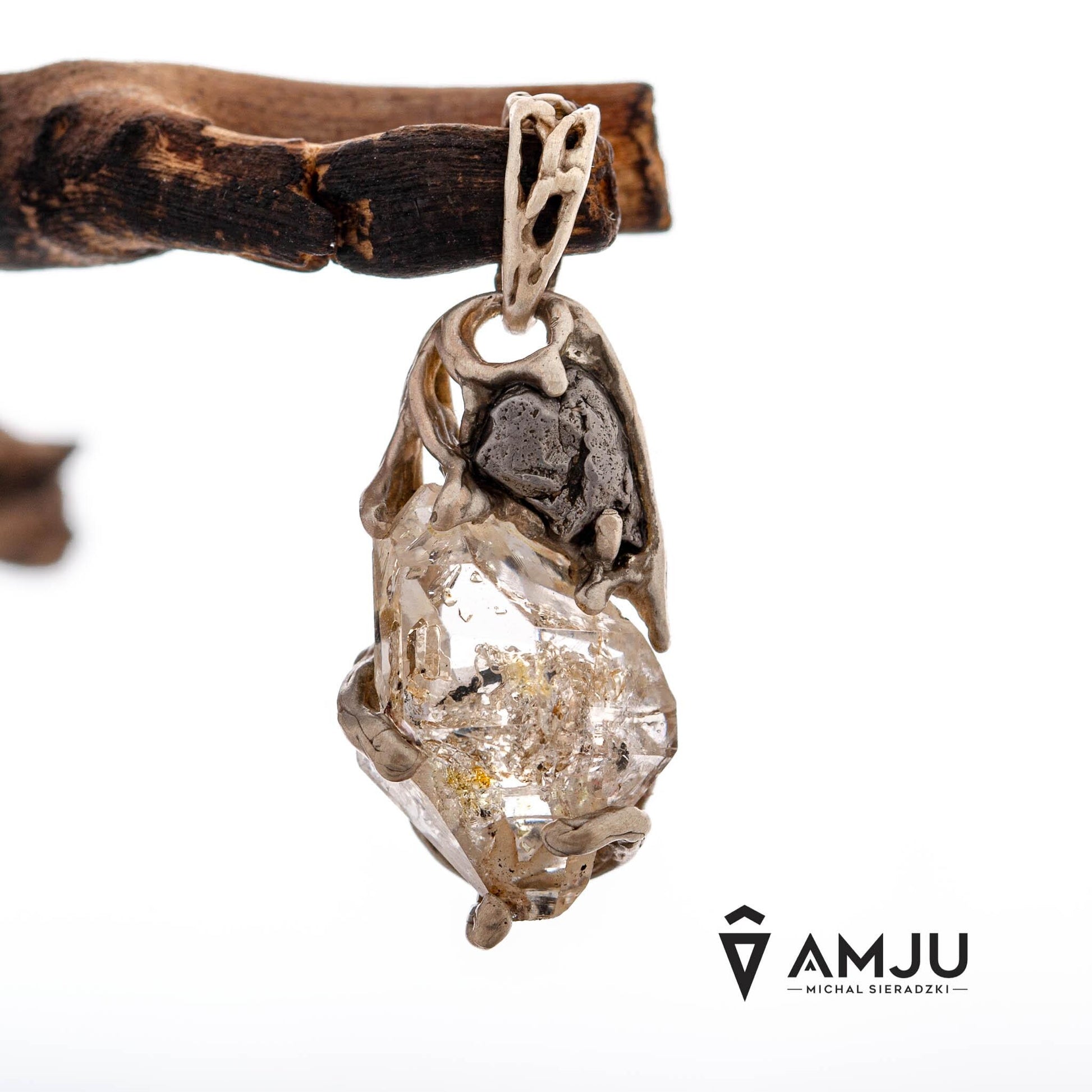 Campo del Cielo meteorite and Herkimer Diamond, pendant
