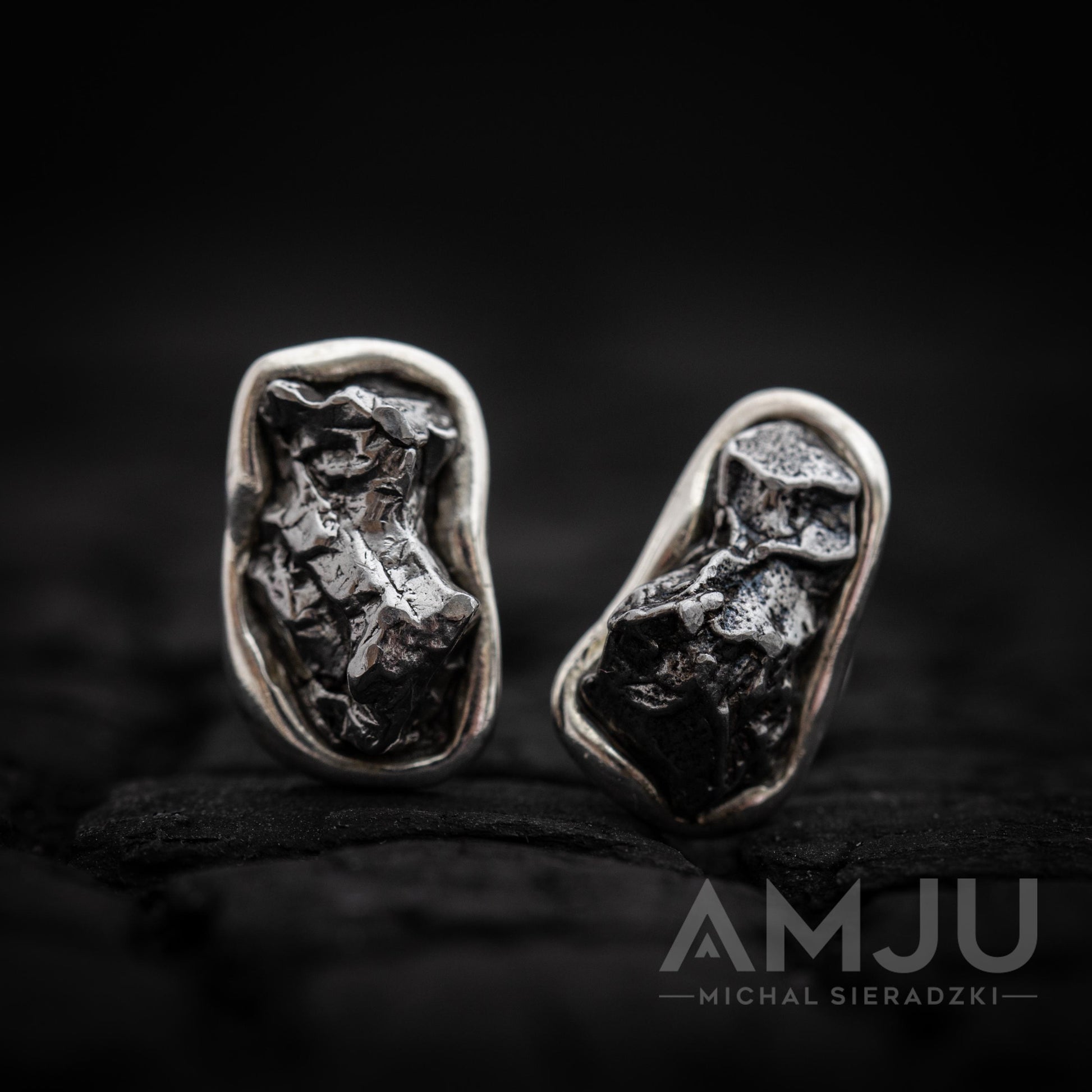 Minimalistic earrings with Campo del Cielo meteorite, framed in sterling silver 925 and polished.
