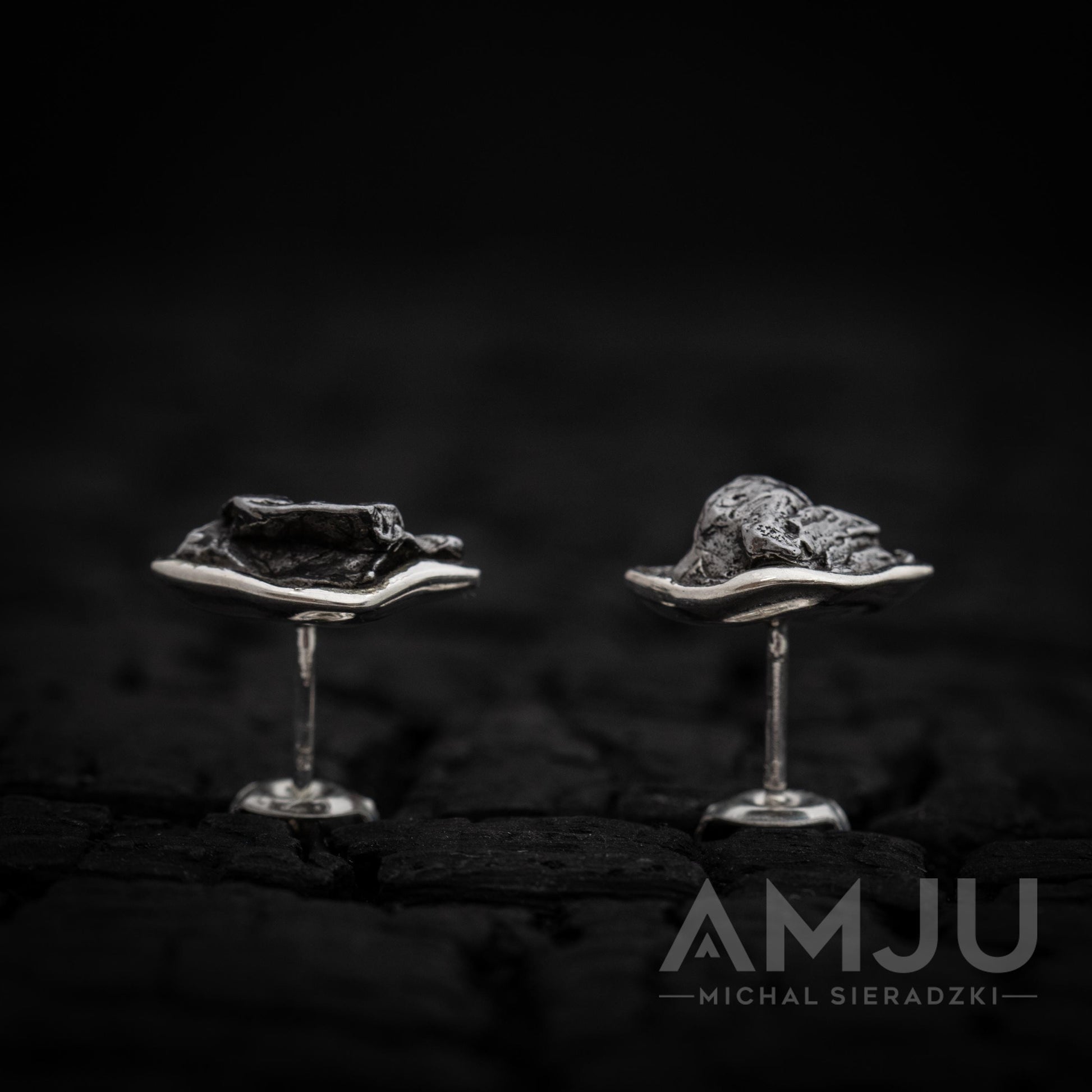 Minimalistic earrings with Campo del Cielo meteorite, framed in sterling silver 925 and polished.