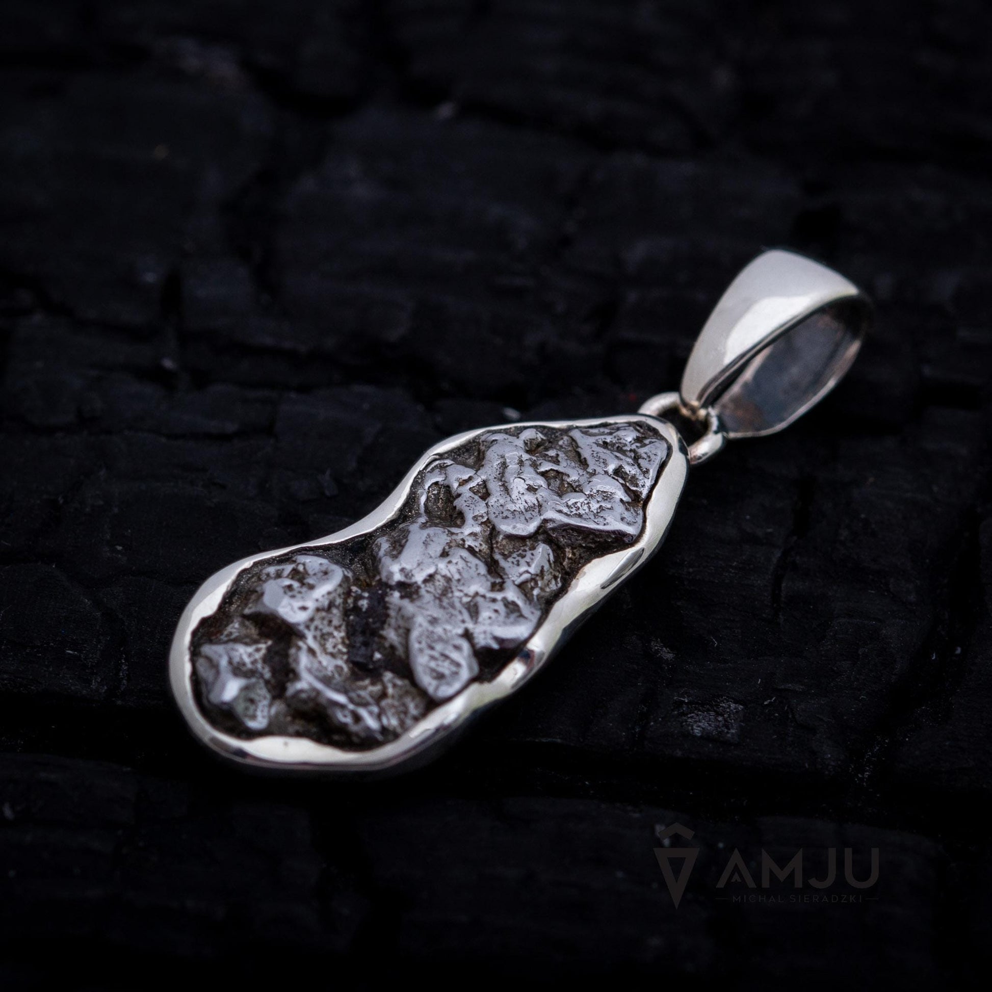 A beautiful pendant with a Campo del Cielo meteorite. The delicate setting is made of a 925 sterling silver, oxidated, and polished.