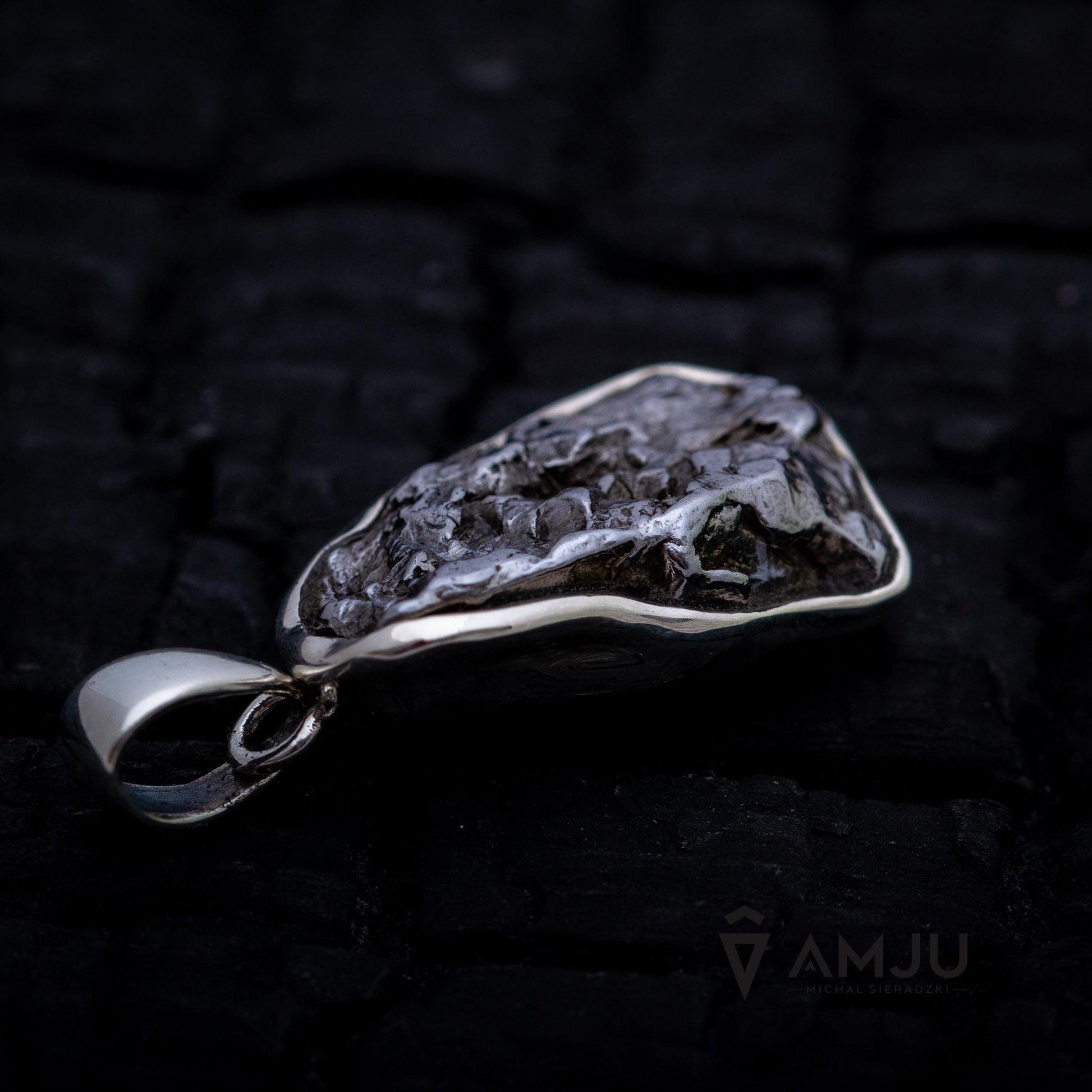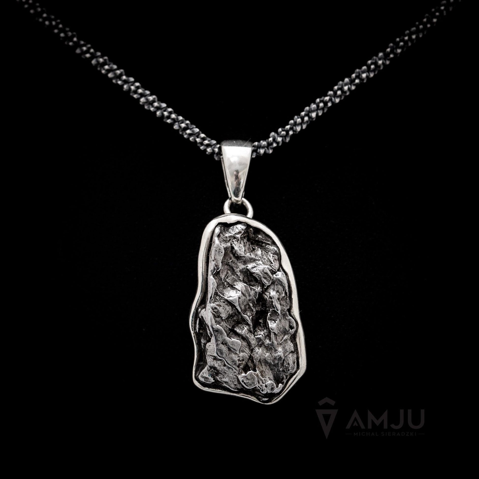 A beautiful pendant with a Campo del Cielo meteorite. The delicate setting is made of a 925 sterling silver, oxidated, and polished.