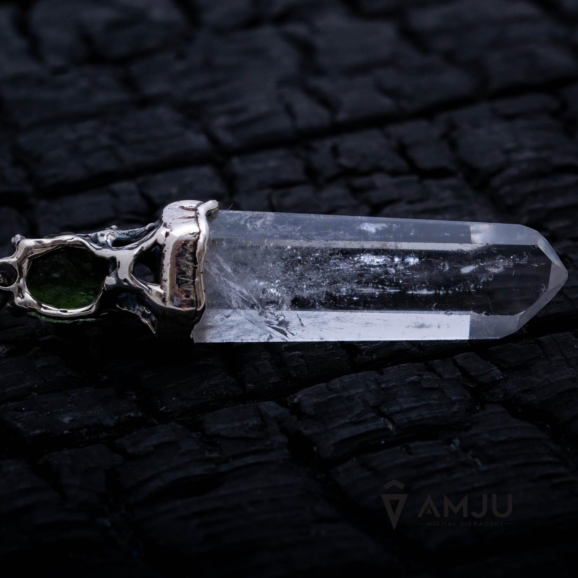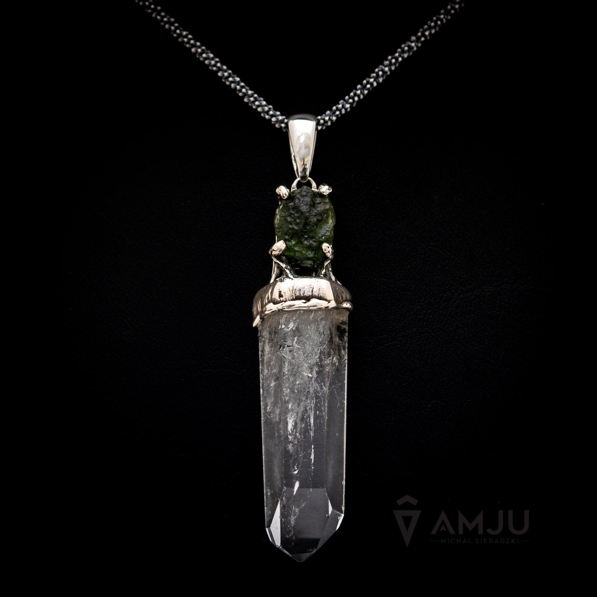 Moldavite and Quartz Crystal, pendant