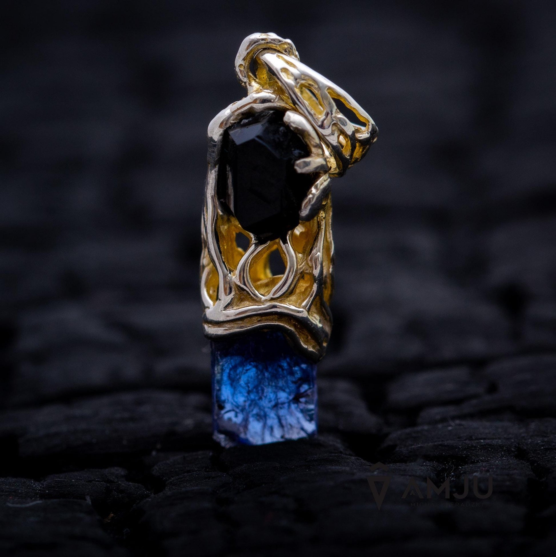 A beautiful pendant with the raw crystal of Tanzanite and black tourmaline, schorl.