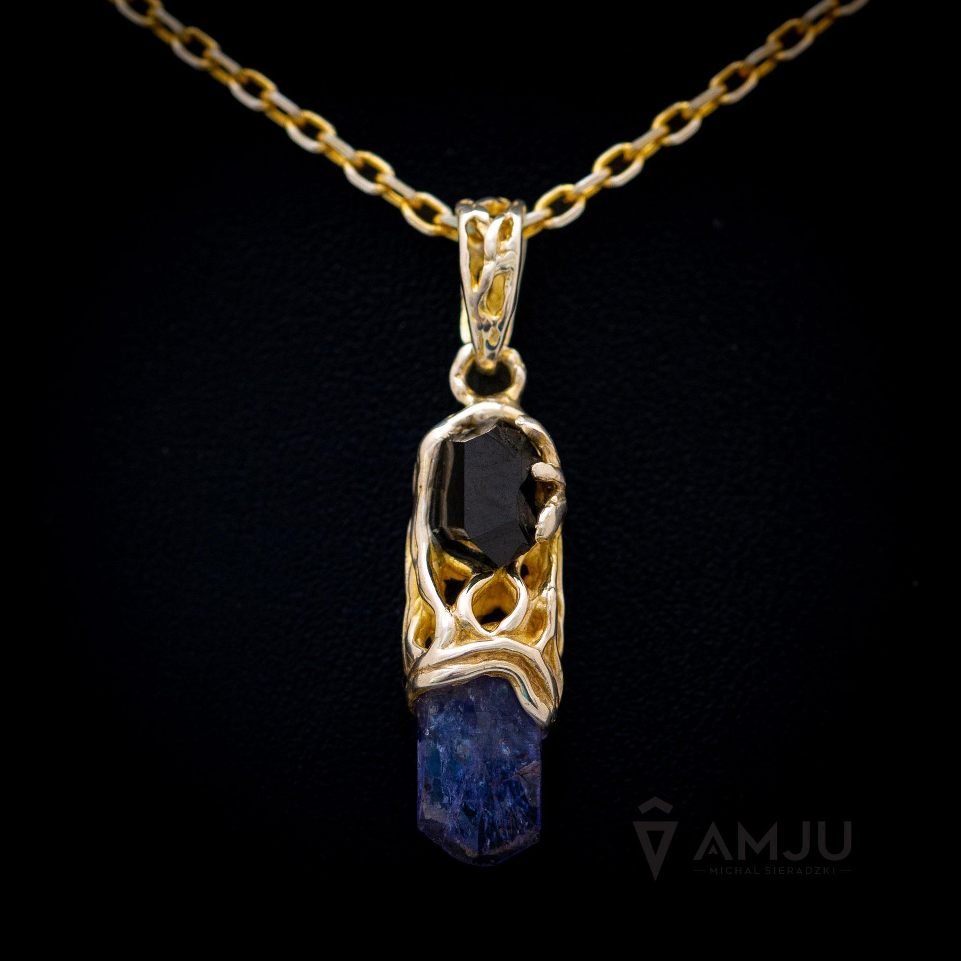 Raw Tanzanite crystal and black tourmaline schorl, pendant