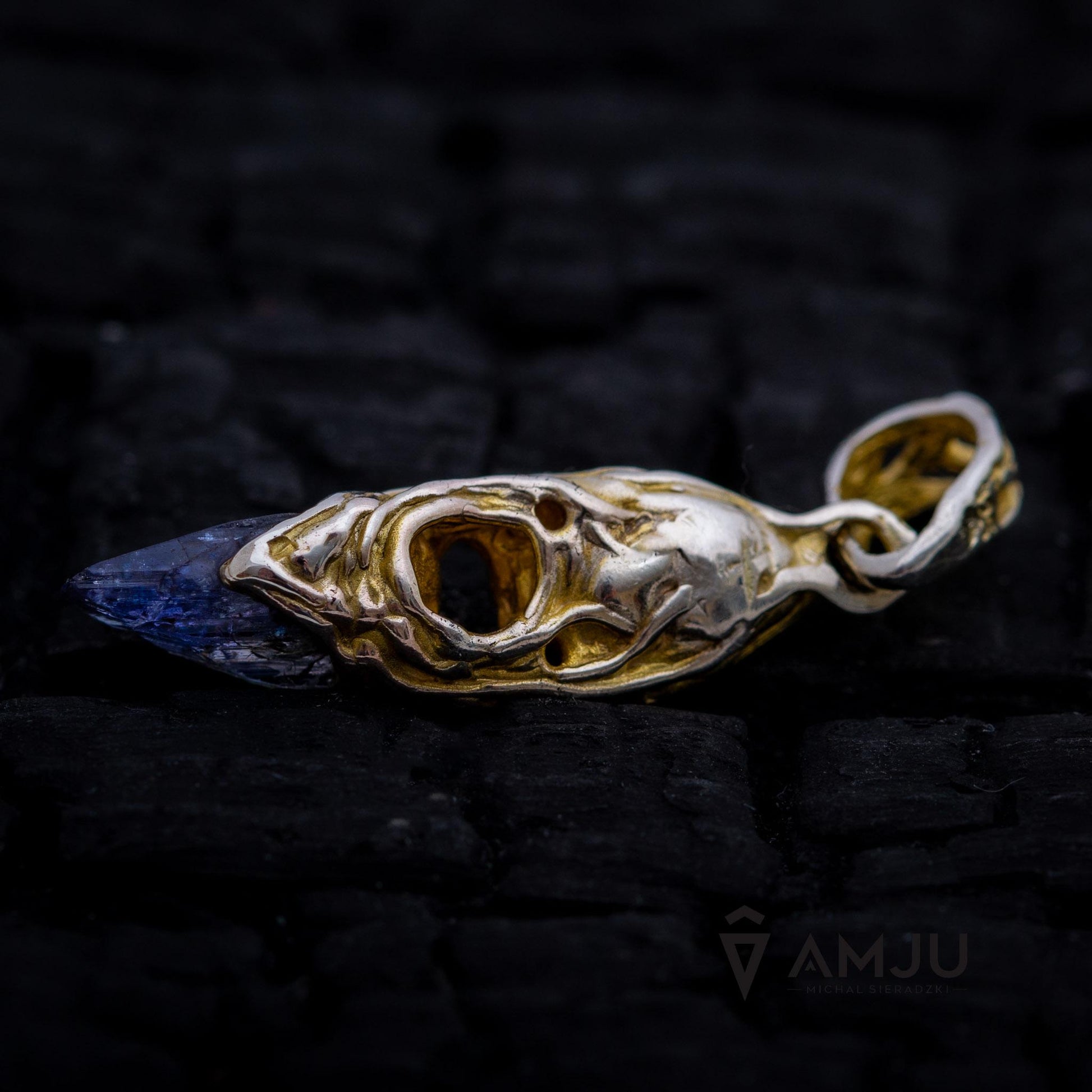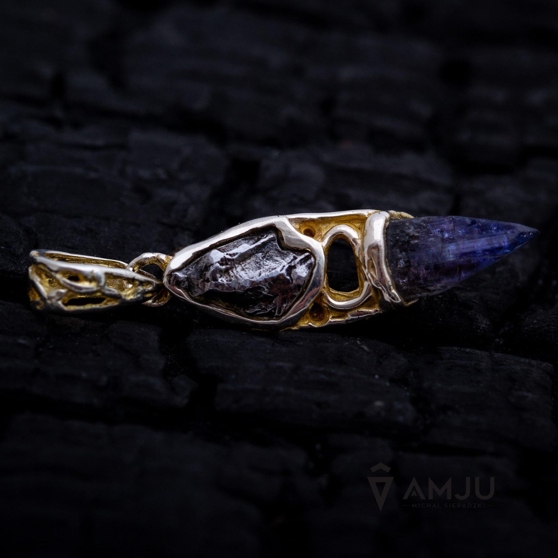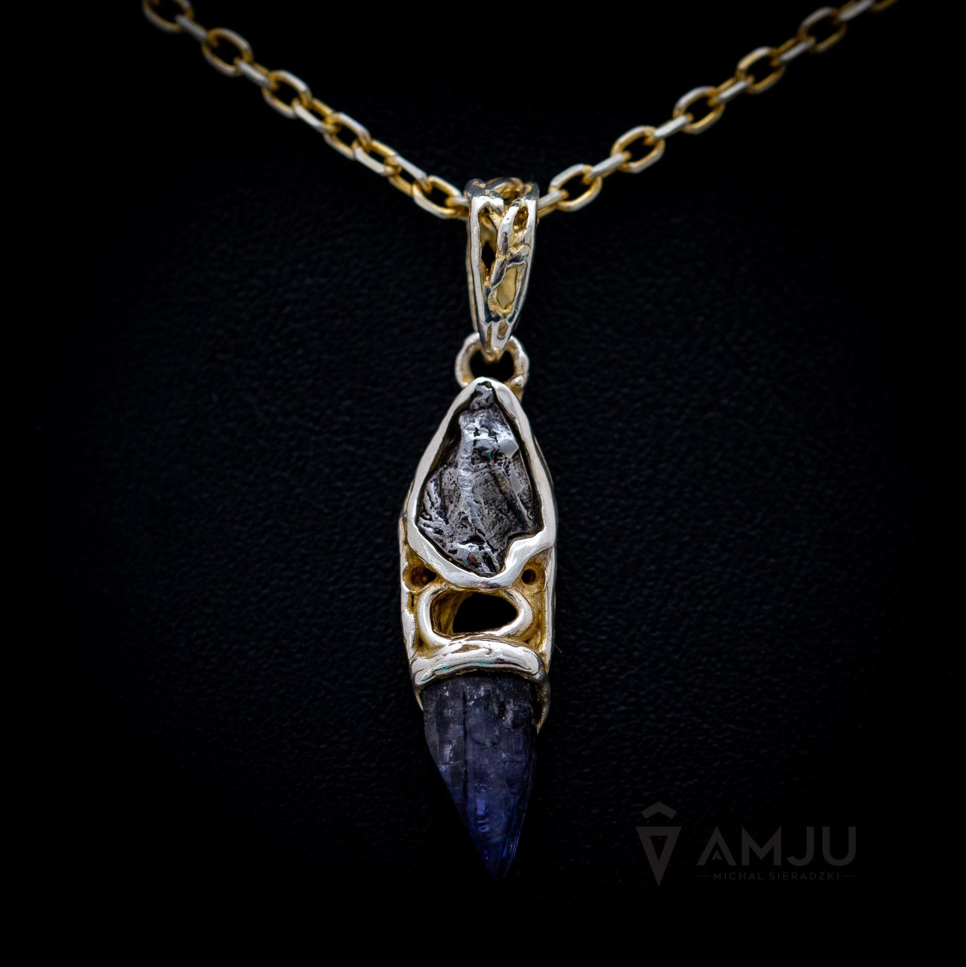 A beautiful pendant with the raw crystal of Tanzanite and Campo del Cielo meteorite.