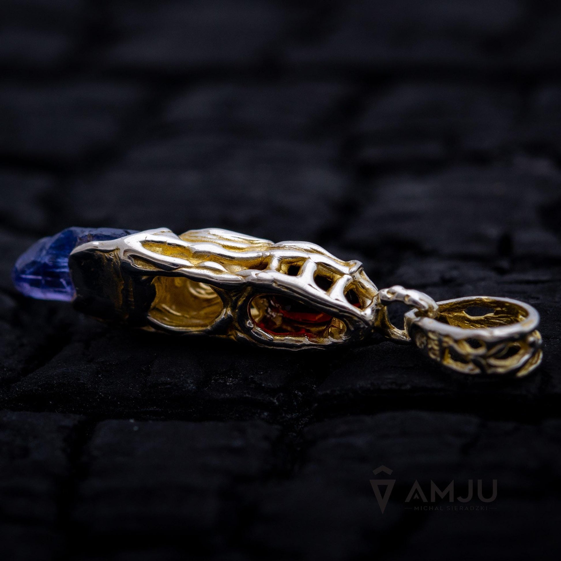 Raw Tanzanite crystal with Garnet, pendant