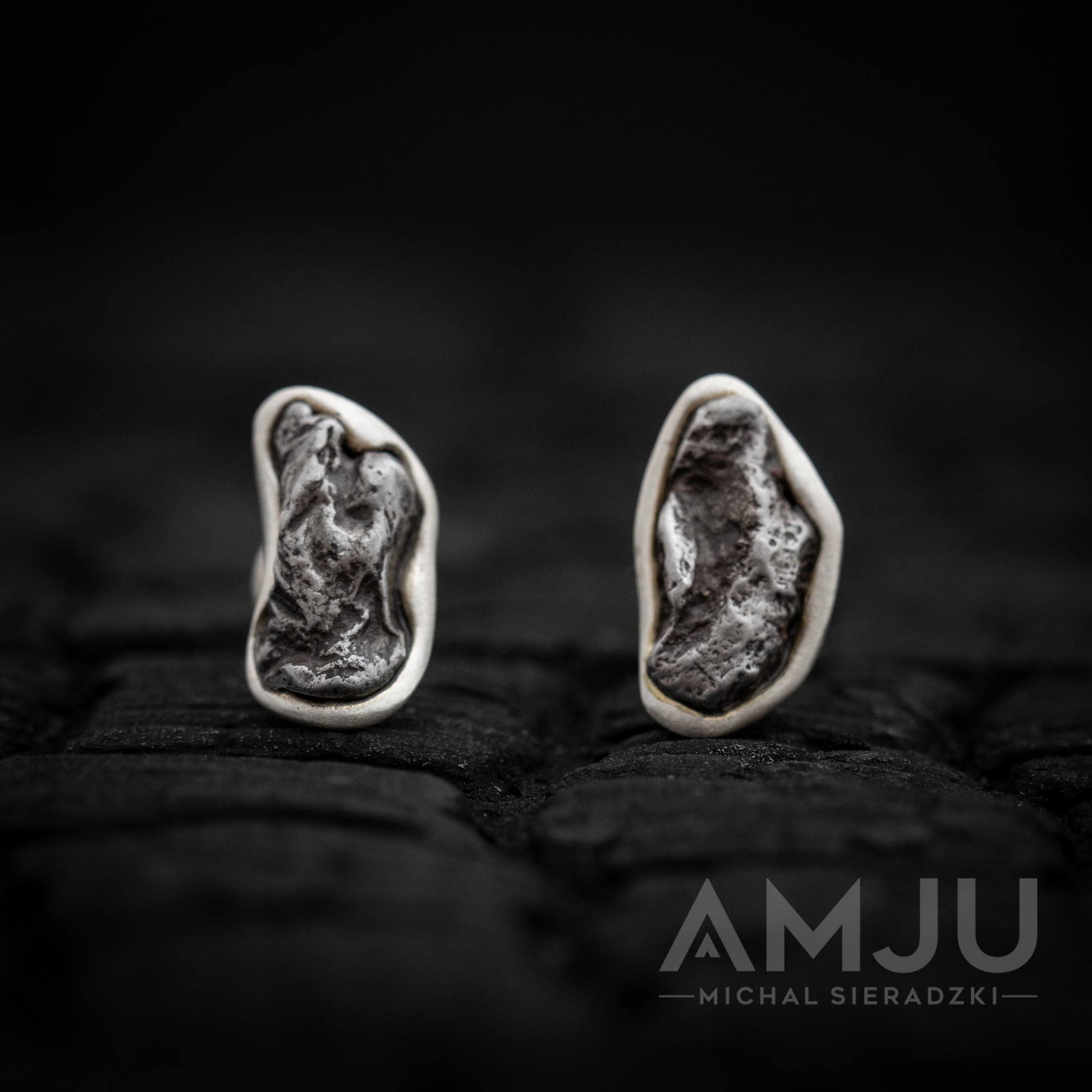 Minimalistic earrings with Sikhote-Alin meteorite, framed in sterling silver 925 oxidated and matte finish.
