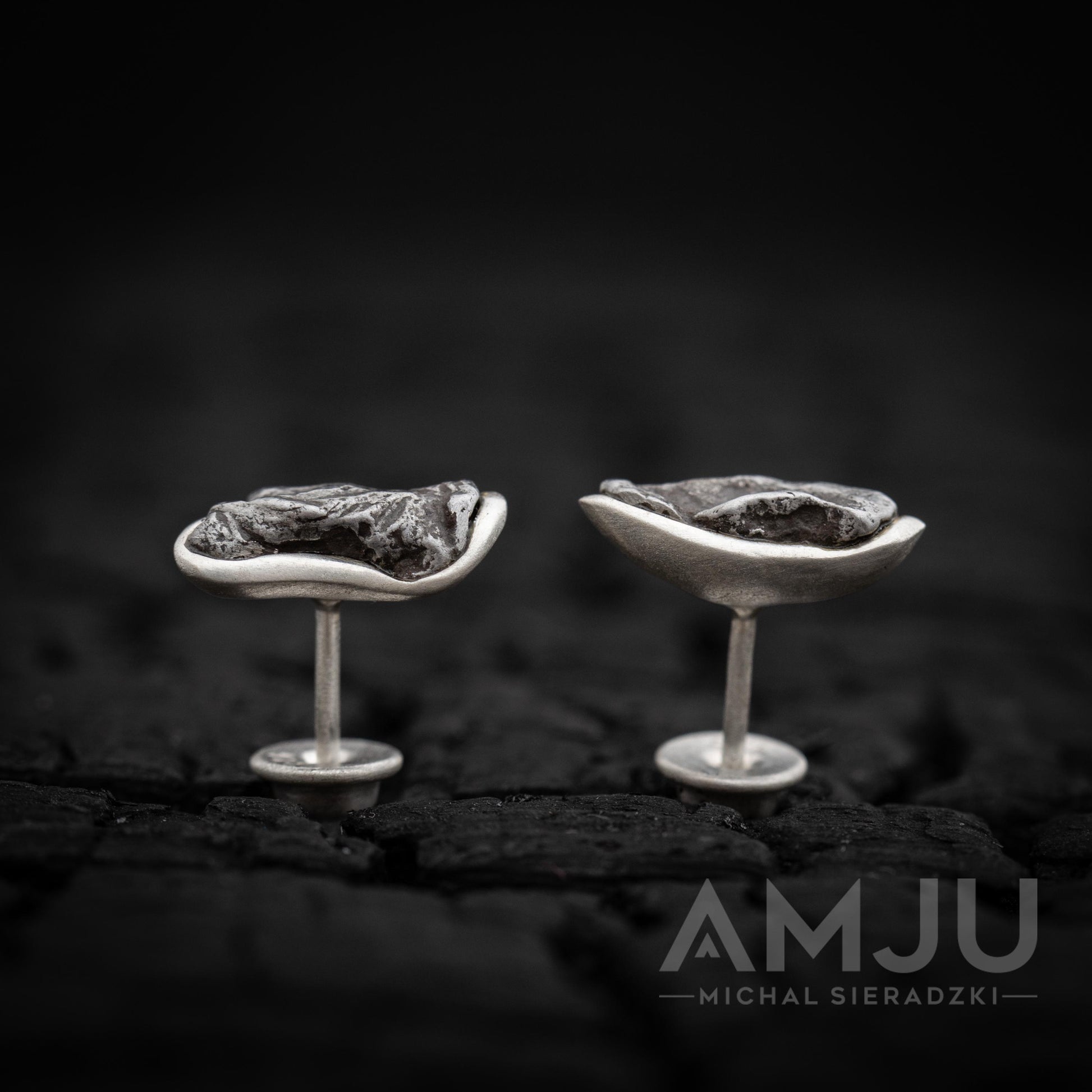 Sikhote-Alin meteorite fell onto the Earth in 1947 in the mountains Sikhote-Alin. It is a coarsest octahedrite. It contains iron, nickel, cobalt, and phosphorus. The earrings feature small, fragments of an actual Sikhote-Alin meteorite, encased in a sleek, setting that showcases its unique, otherworldly texture. These earrings are a perfect blend of nature’s cosmic art and refined design, capturing the raw beauty of a celestial event in a wearable form. Whether worn as a token of curiosity or a symbol of the universe's mysteries, it serves as a constant reminder of the boundless wonders of space.