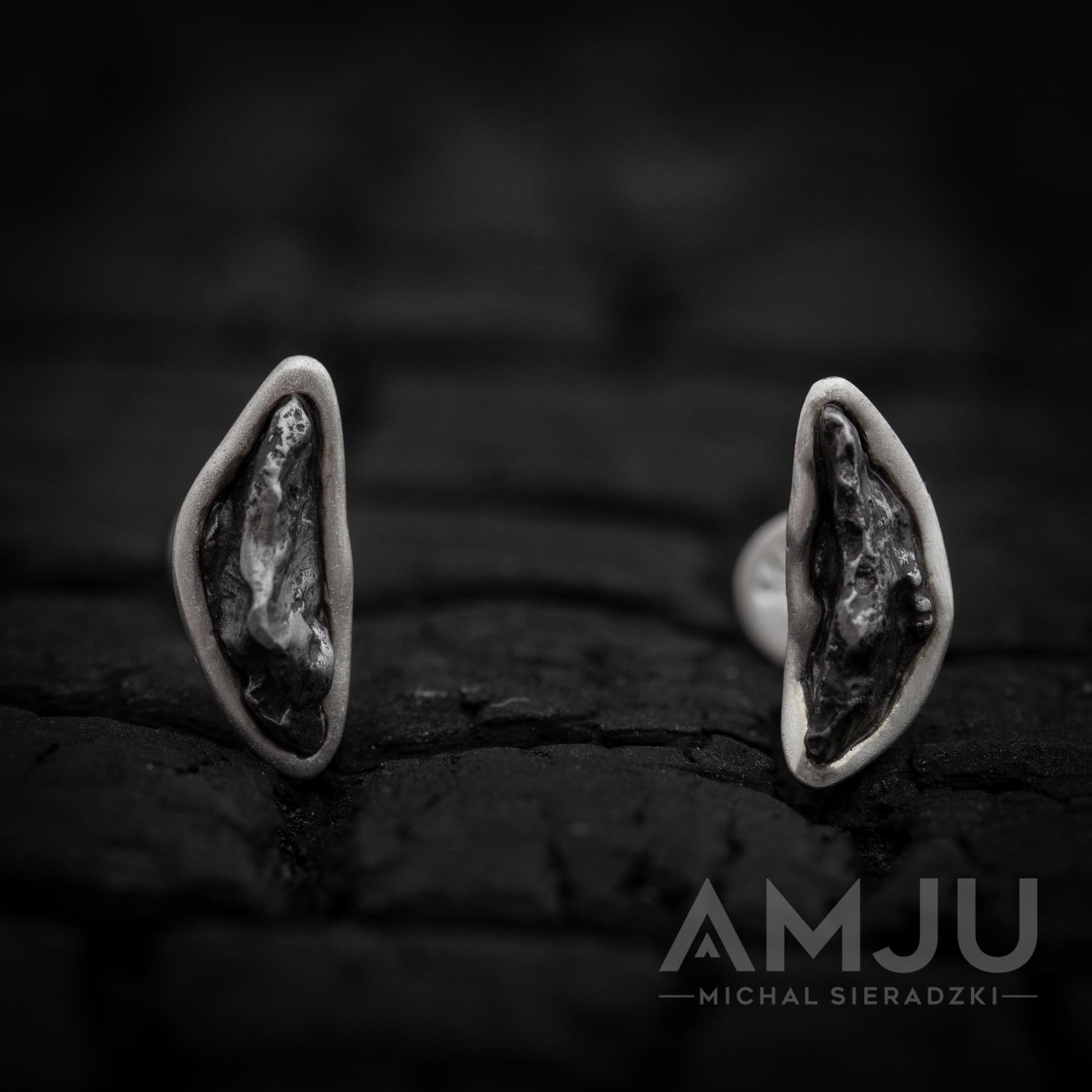 Minimalistic earrings with Sikhote-Alin meteorite, framed in sterling silver 925 and matte finish.