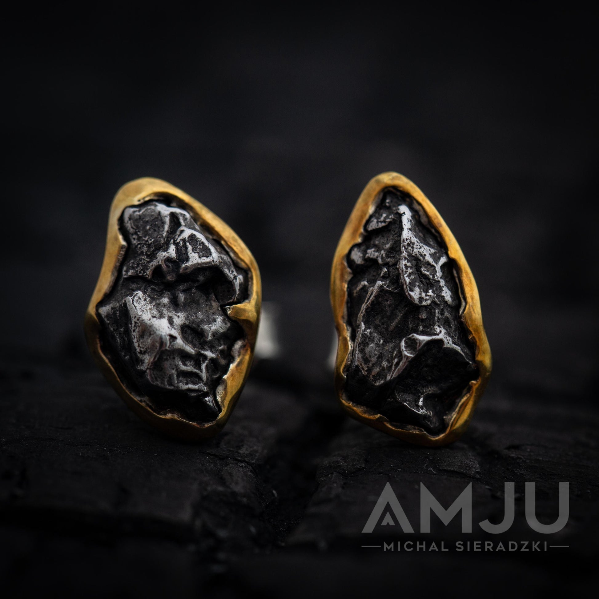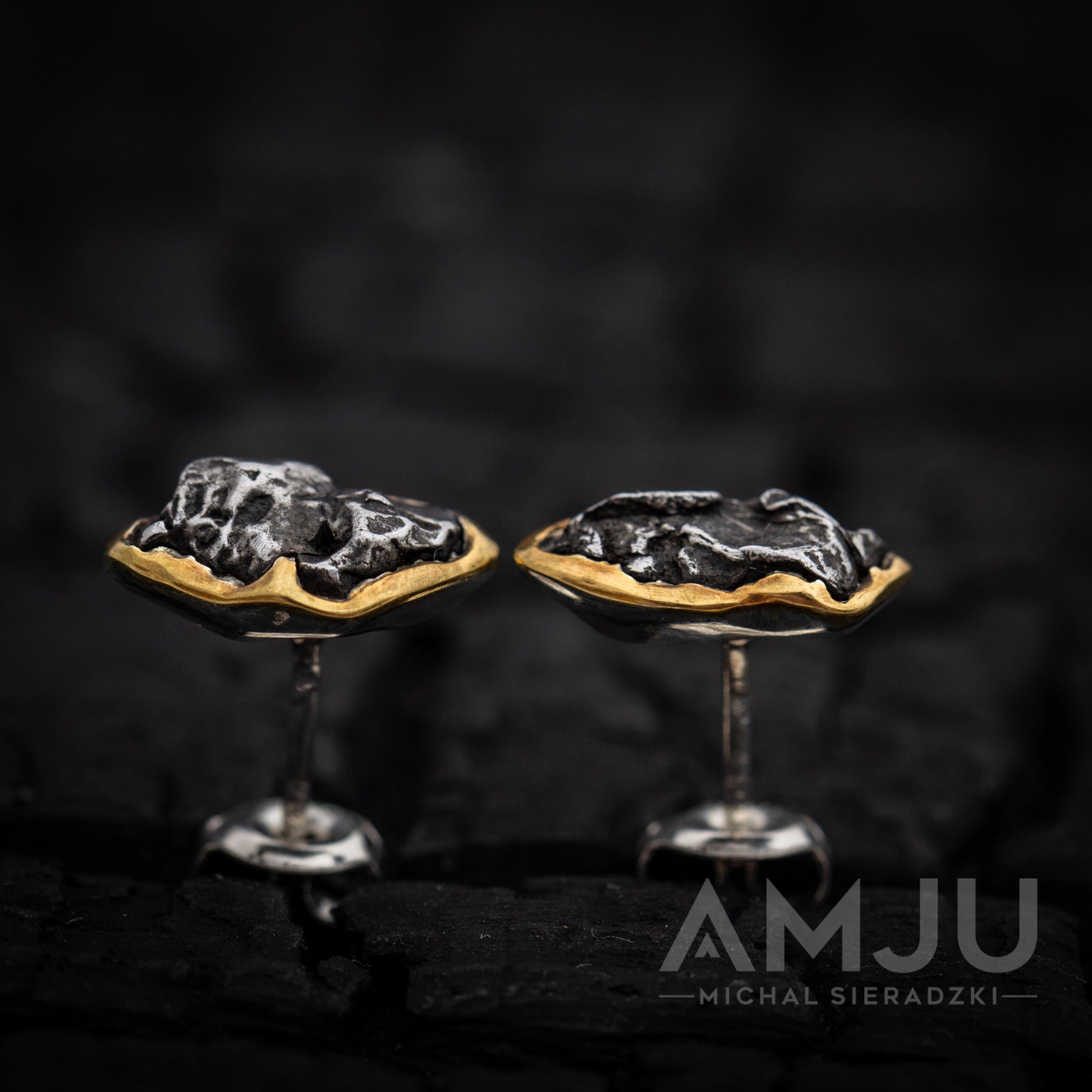 Minimalistic earrings with Sikhote-Alin meteorite, framed in sterling silver 925 partially gold plated and polished.