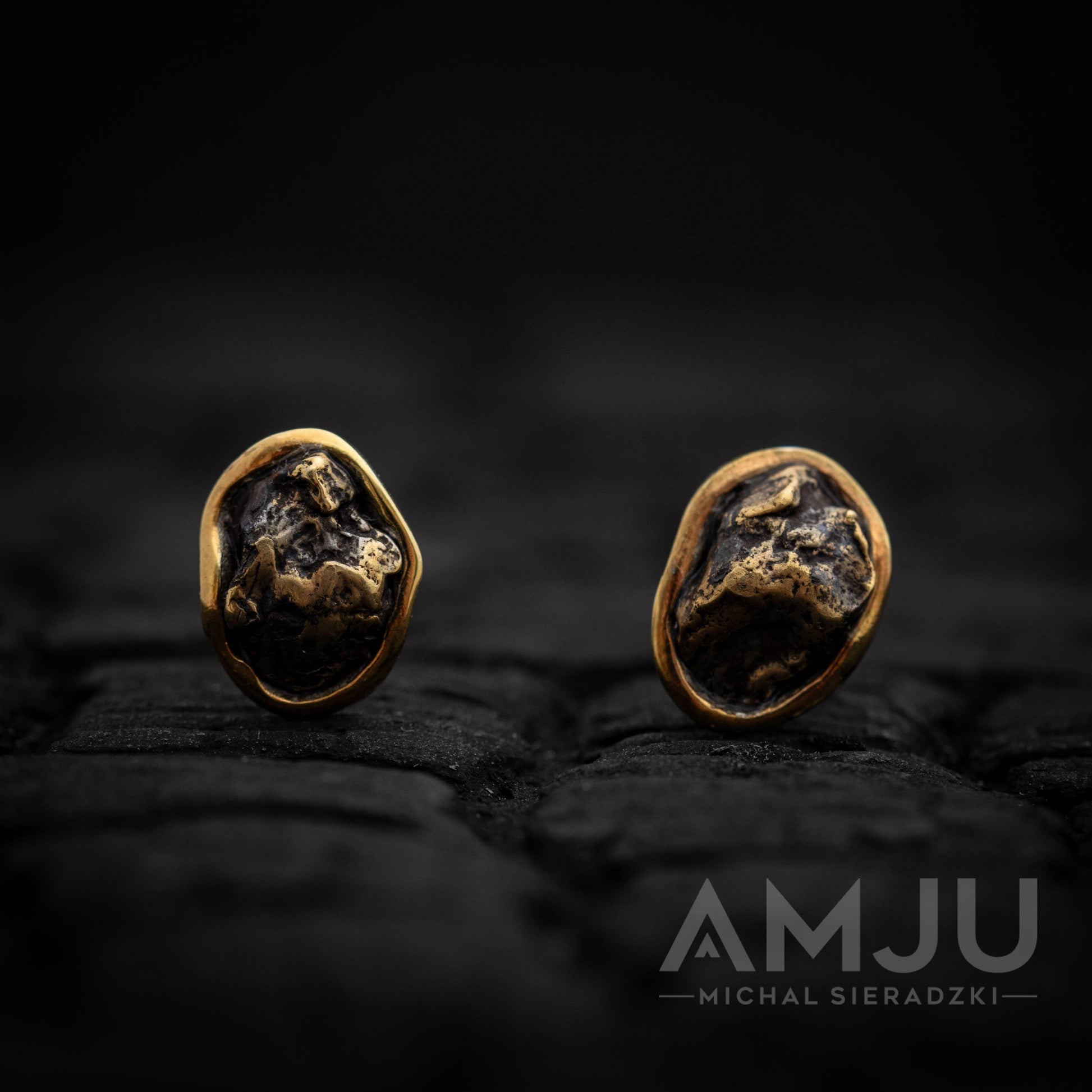 Minimalistic earrings with Sikhote-Alin meteorite, framed in sterling silver 925 partially gold plated and polished.