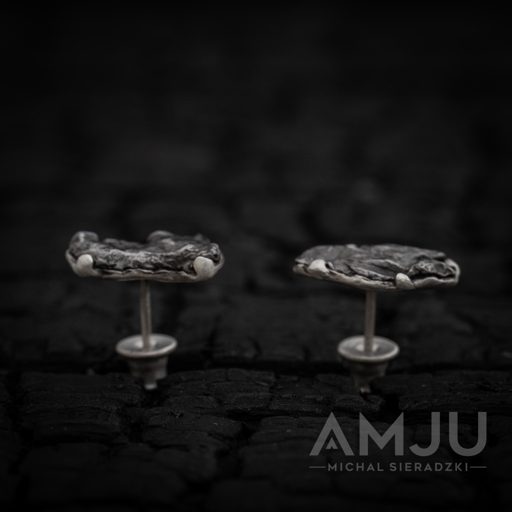 Minimalistic earrings with Sikhote-Alin meteorite, framed in sterling silver 925 oxidated and matte finish.