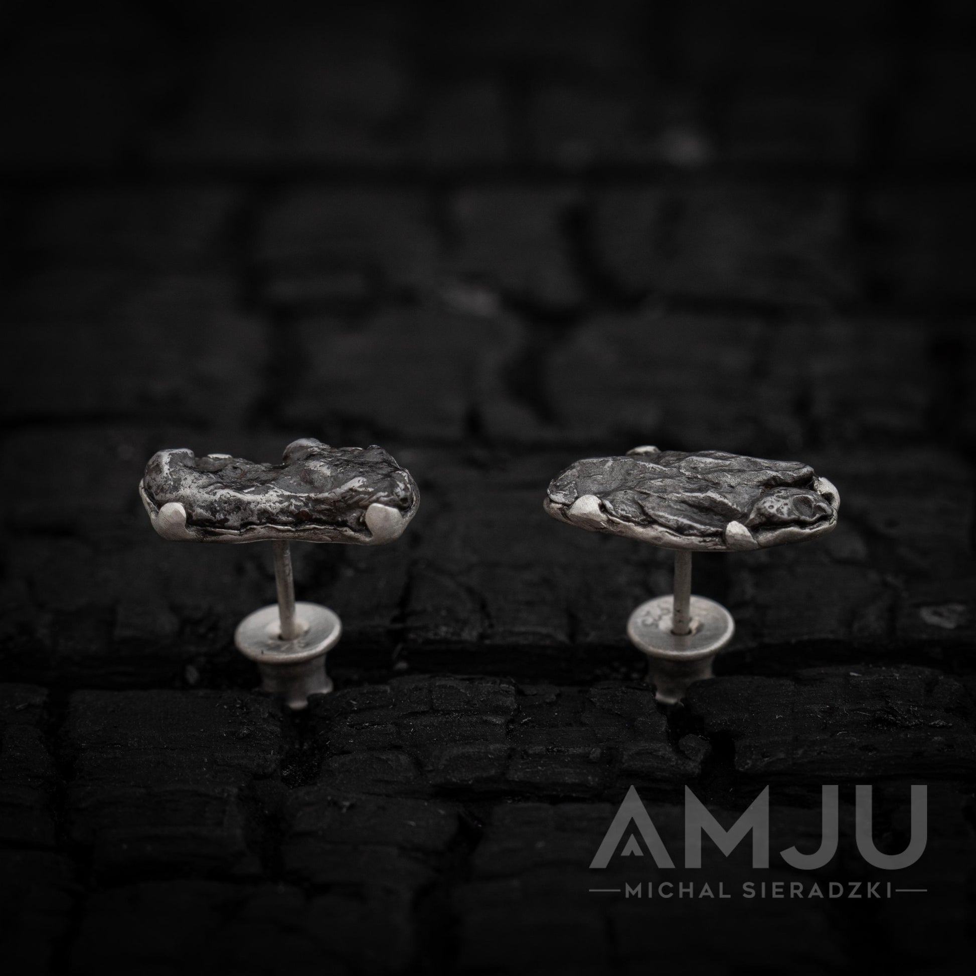 Sikhote-Alin meteorite fell onto the Earth in 1947 in the mountains Sikhote-Alin. It is a coarsest octahedrite. It contains iron, nickel, cobalt, and phosphorus. The earrings feature small, fragments of an actual Sikhote-Alin meteorite, encased in a sleek, setting that showcases its unique, otherworldly texture. These earrings are a perfect blend of nature’s cosmic art and refined design, capturing the raw beauty of a celestial event in a wearable form. Whether worn as a token of curiosity or a symbol of the universe's mysteries, it serves as a constant reminder of the boundless wonders of space.