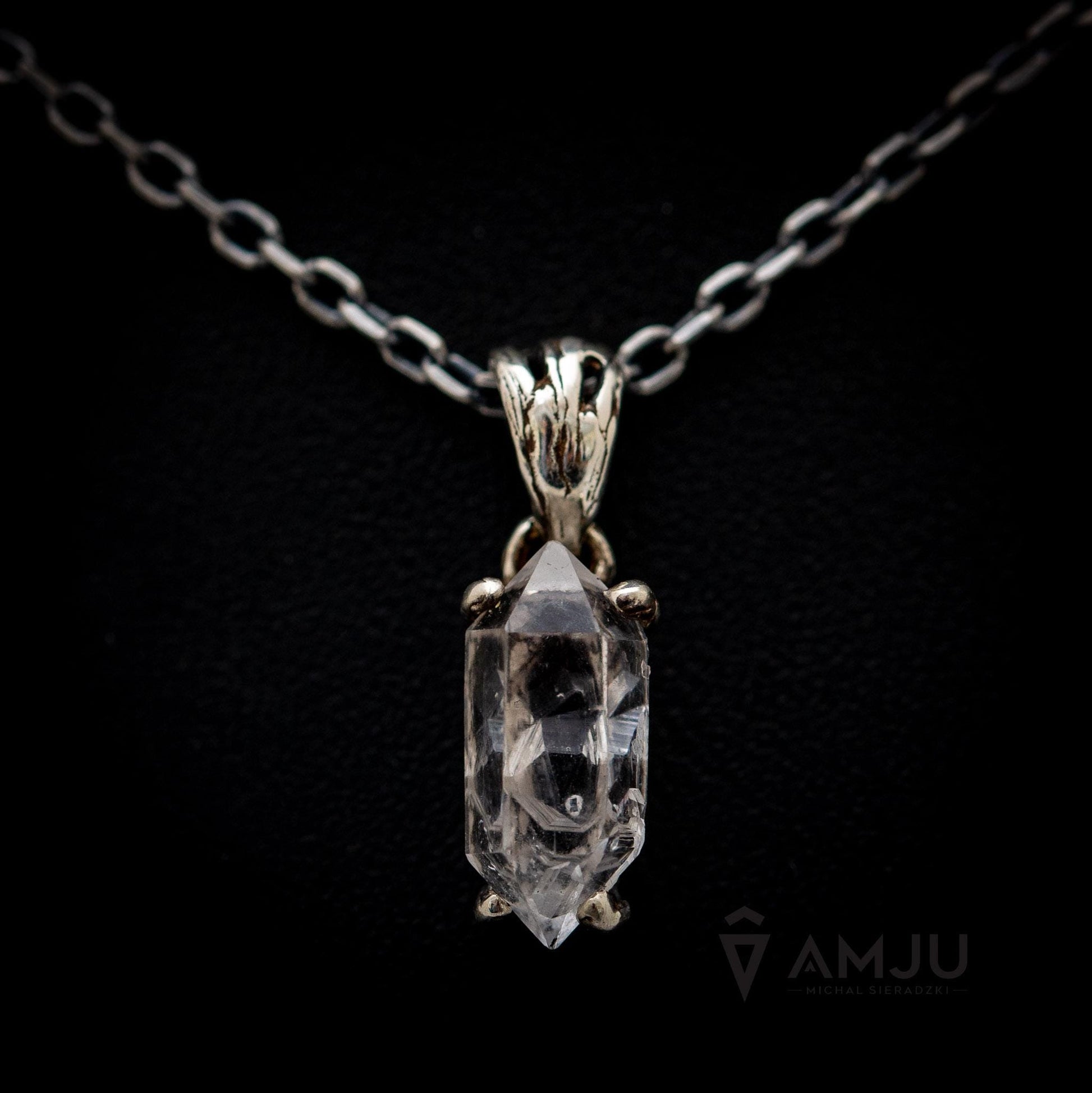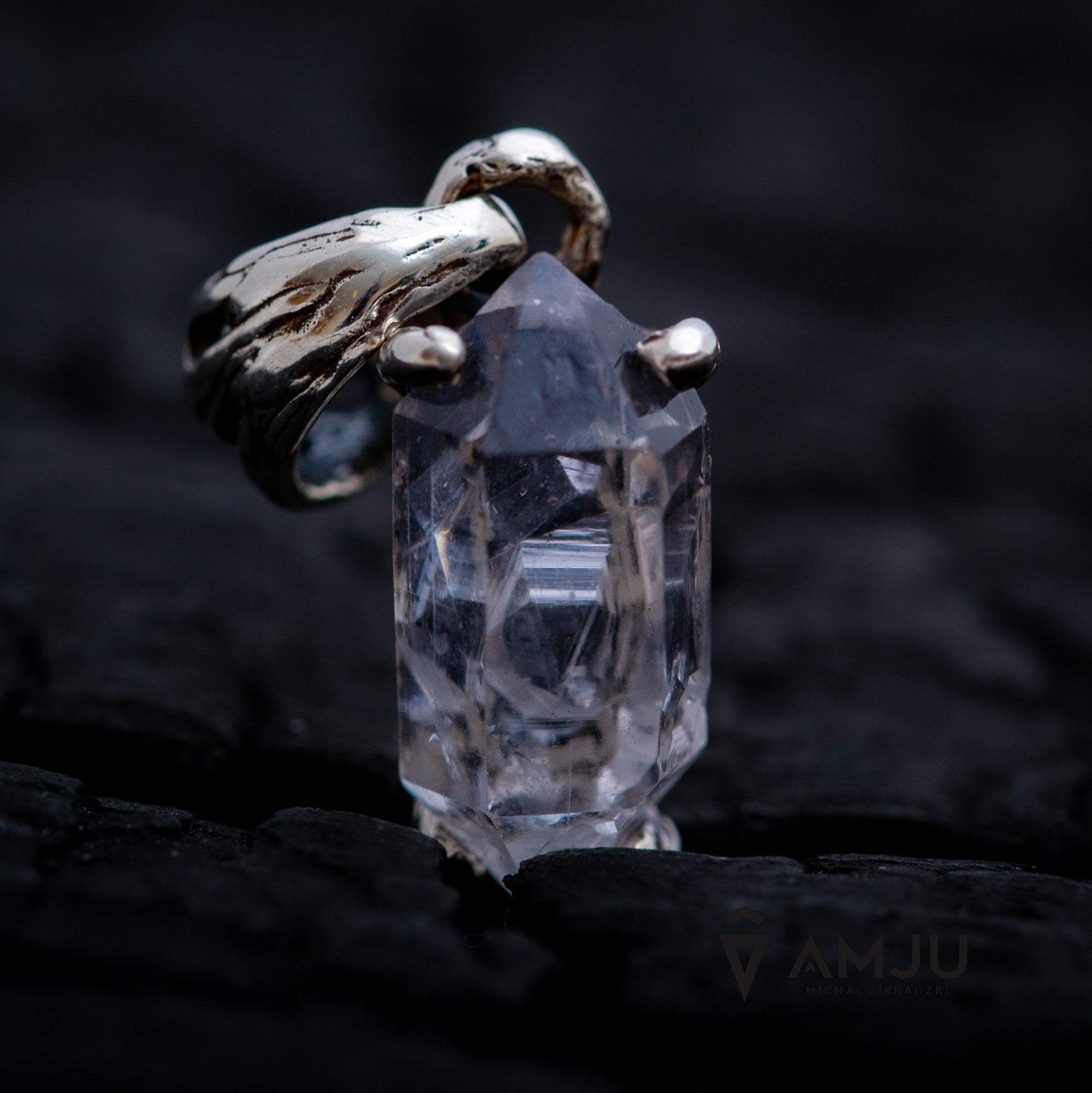 Tibetan Quartz with key formation. This unique gemstone hasn't been polished, its form is fully natural. . The delicate setting is a 925 sterling silver, oxidated and polished.